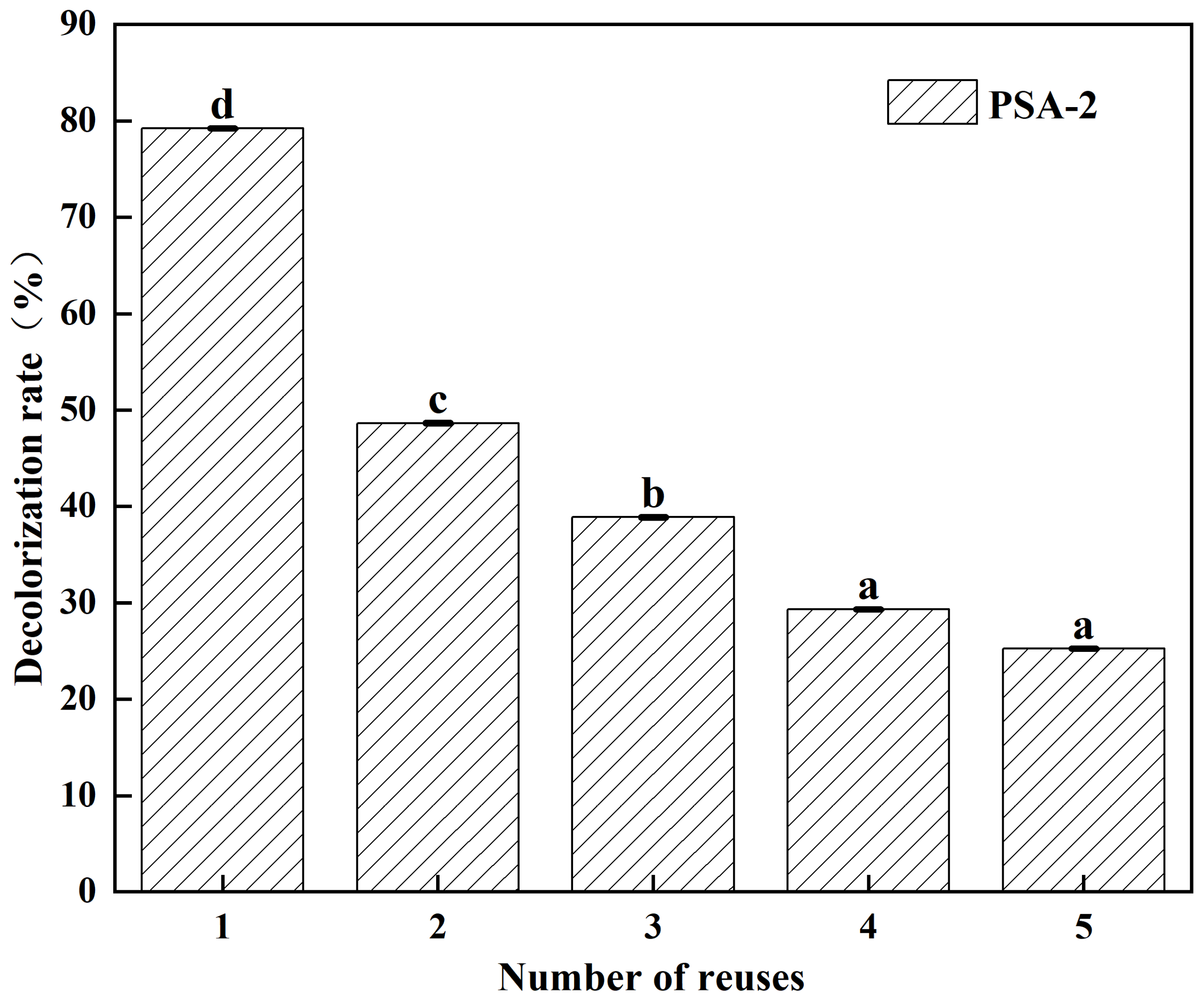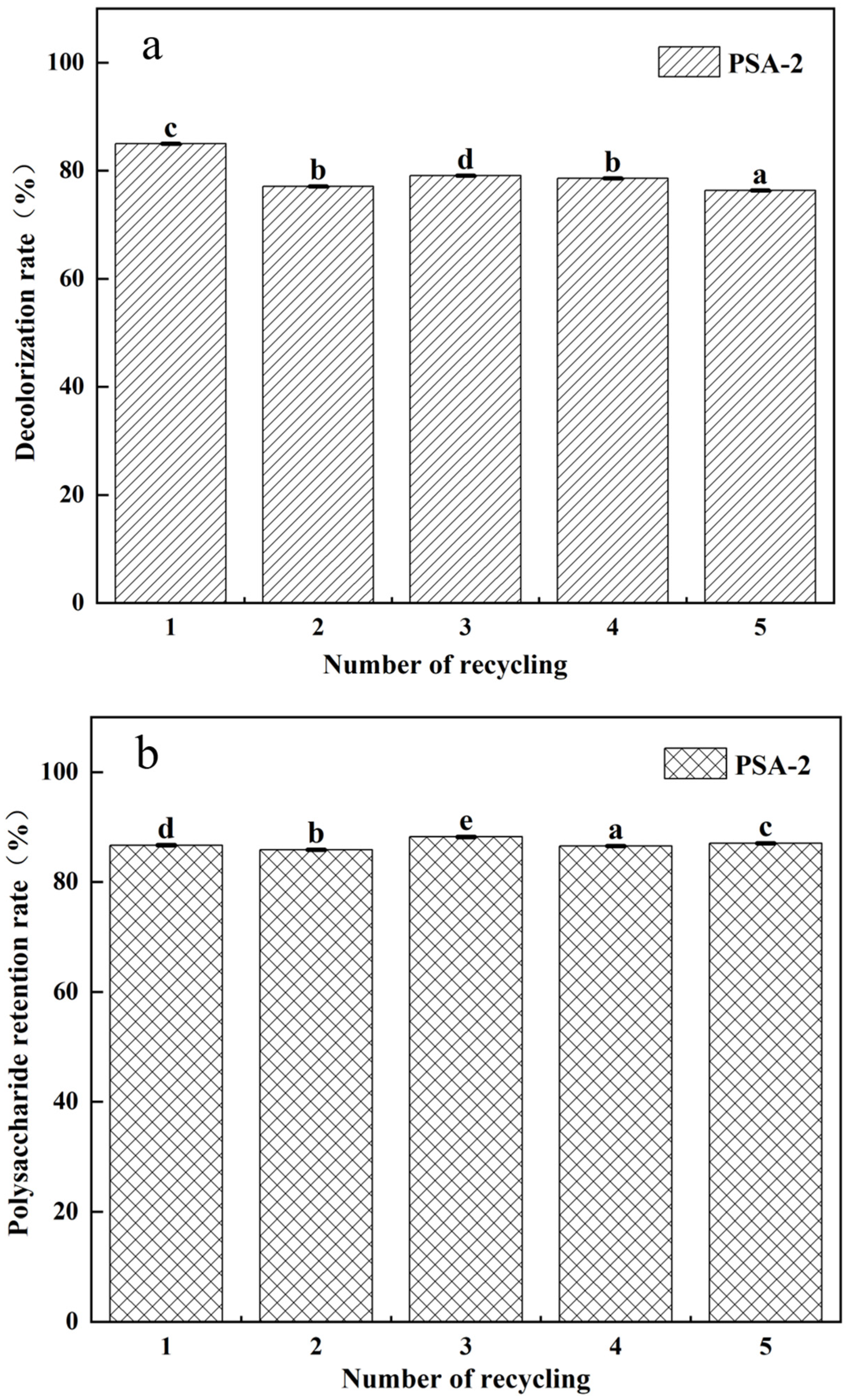 3.2. Decolorization Performance of Adsorbents on S. crispa Polysaccharide Solutions