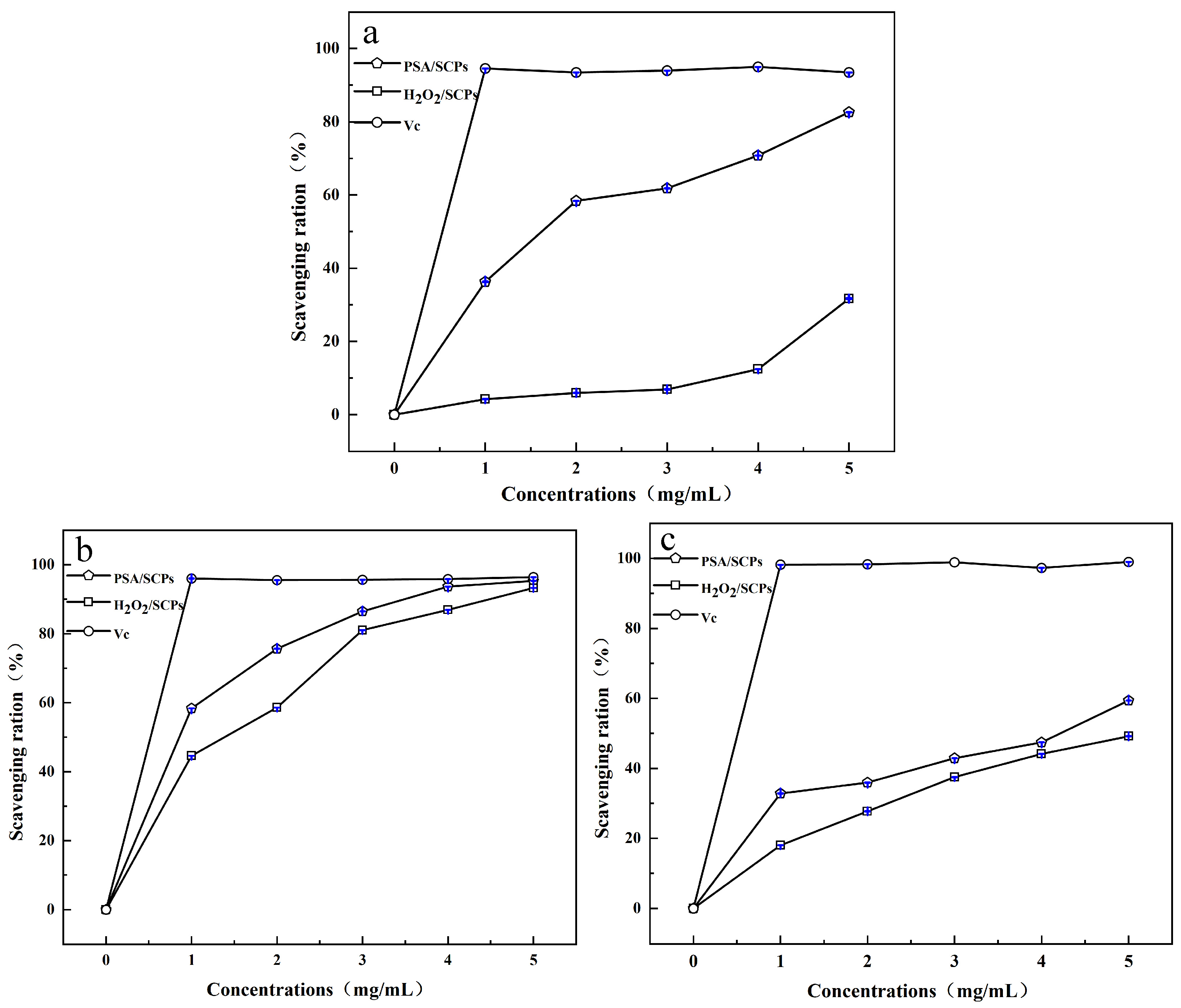 3.5.1. Antioxidant Activity of S. crispa Polysaccharides