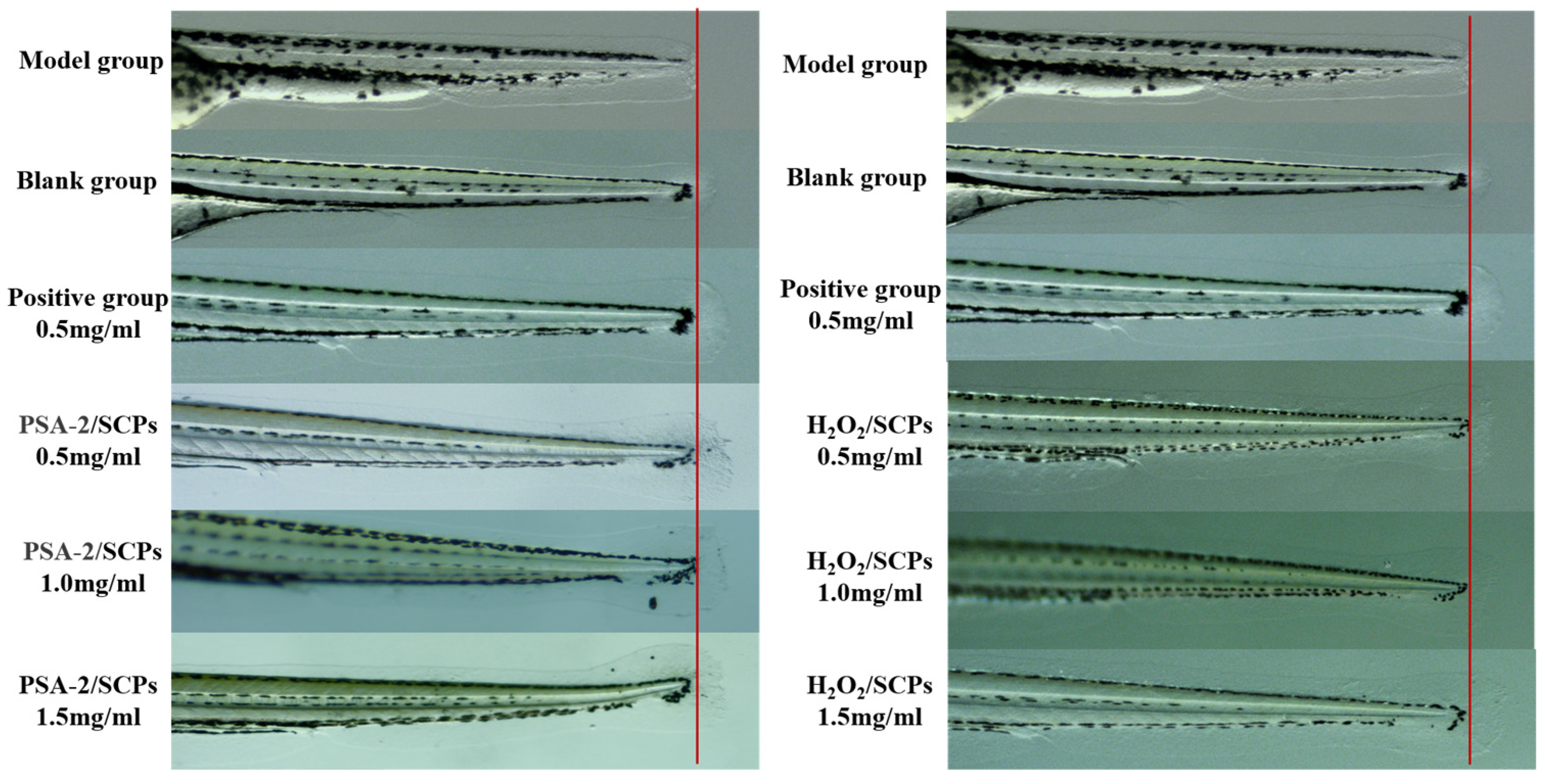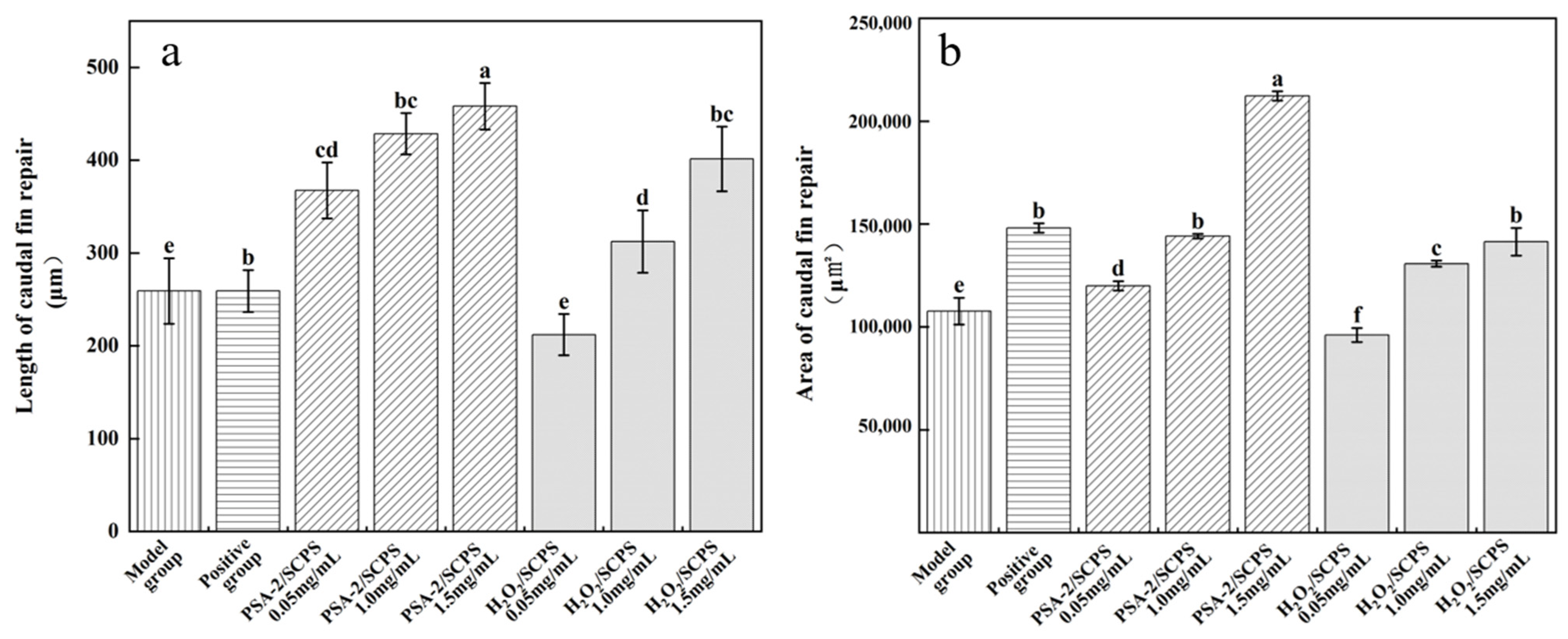 3.5.2. Regenerative Effects of S. crispa Polysaccharides on Zebrafish Caudal Fin