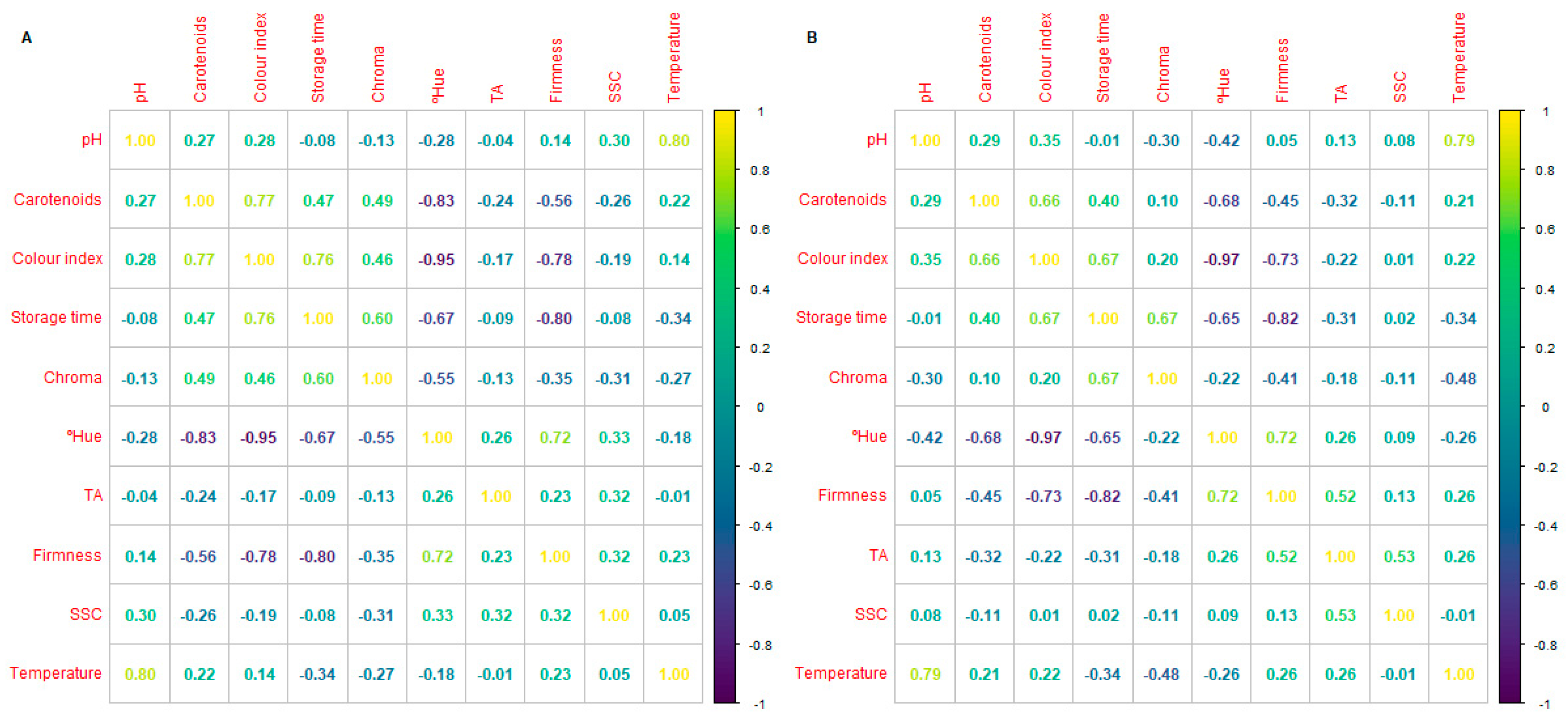- Li, X.; Huang, H.; Zhang, L.; Zhao, L. Effect of postharvest storage temperature and duration on tomato fruit quality. Foods 2025, 14, 1002. [Google Scholar] [CrossRef]