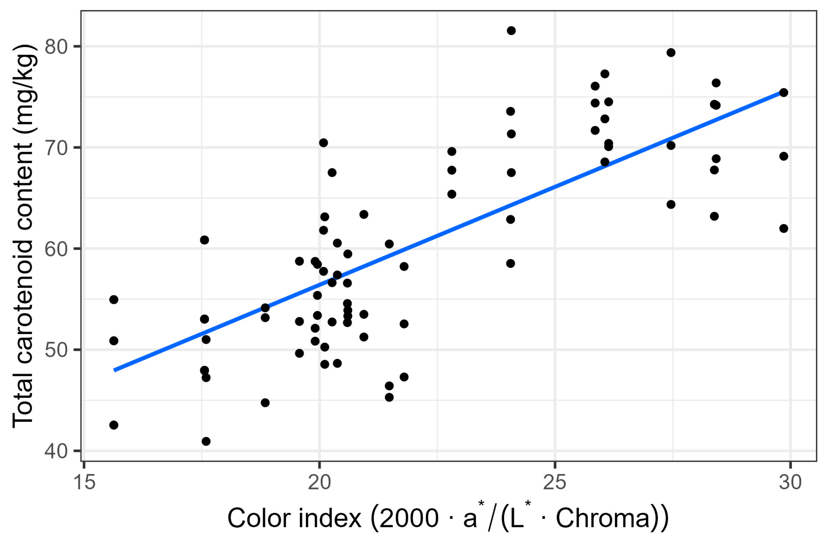 | Total carotenoids (mg kg−1) Control | 53.9 ± 6.5 Aa | 54.0 ± 8.0 Aa | 5.9 ± 7.7 Aa | 54.6 ± 2.0 Aa | 50.7 ± 8.4 Aa | 52.7 ± 5.5 Aa | 65.0 ± 7.7 Aa | 74.0 ± 2.2 Aa | 73.1 ± 3.8 Aa | 50.7 ± 5.2 Aa | 56.0 ± 6.4 Aa | 68.8 ± 6.7 Aa | 72.9 ± 4.4 Aa |