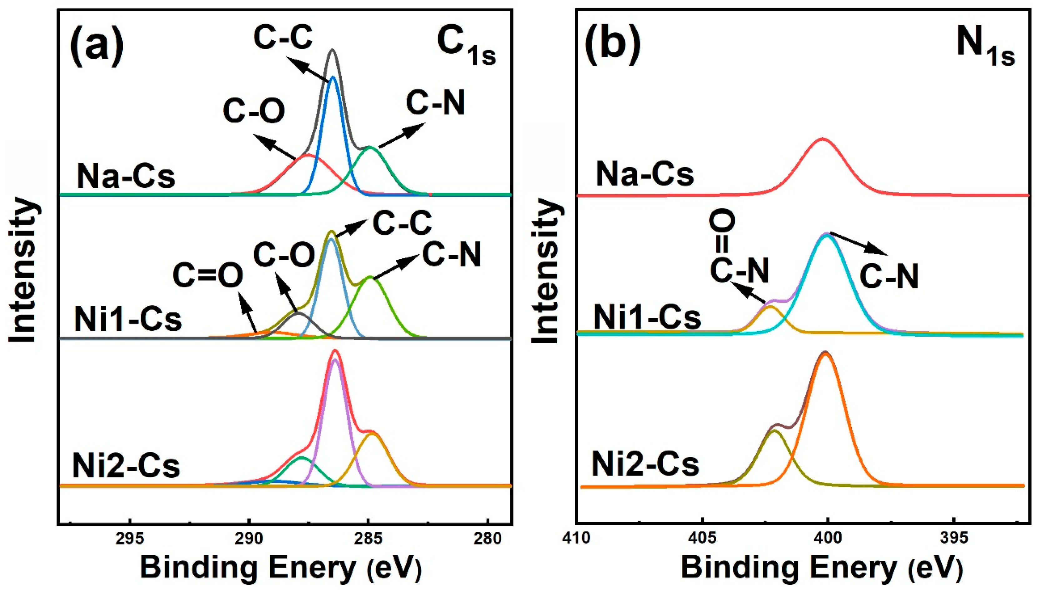 X-ray photoelectron spectra of samples were obtained using a Thermo Scientific K-Alpha+ XPS (Thermo Fisher Scientific Co., Ltd., Waltham, MA, USA). Analysis chamber vacuum was approximately 5 × 10−9 mbar, X-ray source was monochromatic Al Kα (1486.6 eV), and C1s (284.80 eV) was used as the energy standard for charge correction.