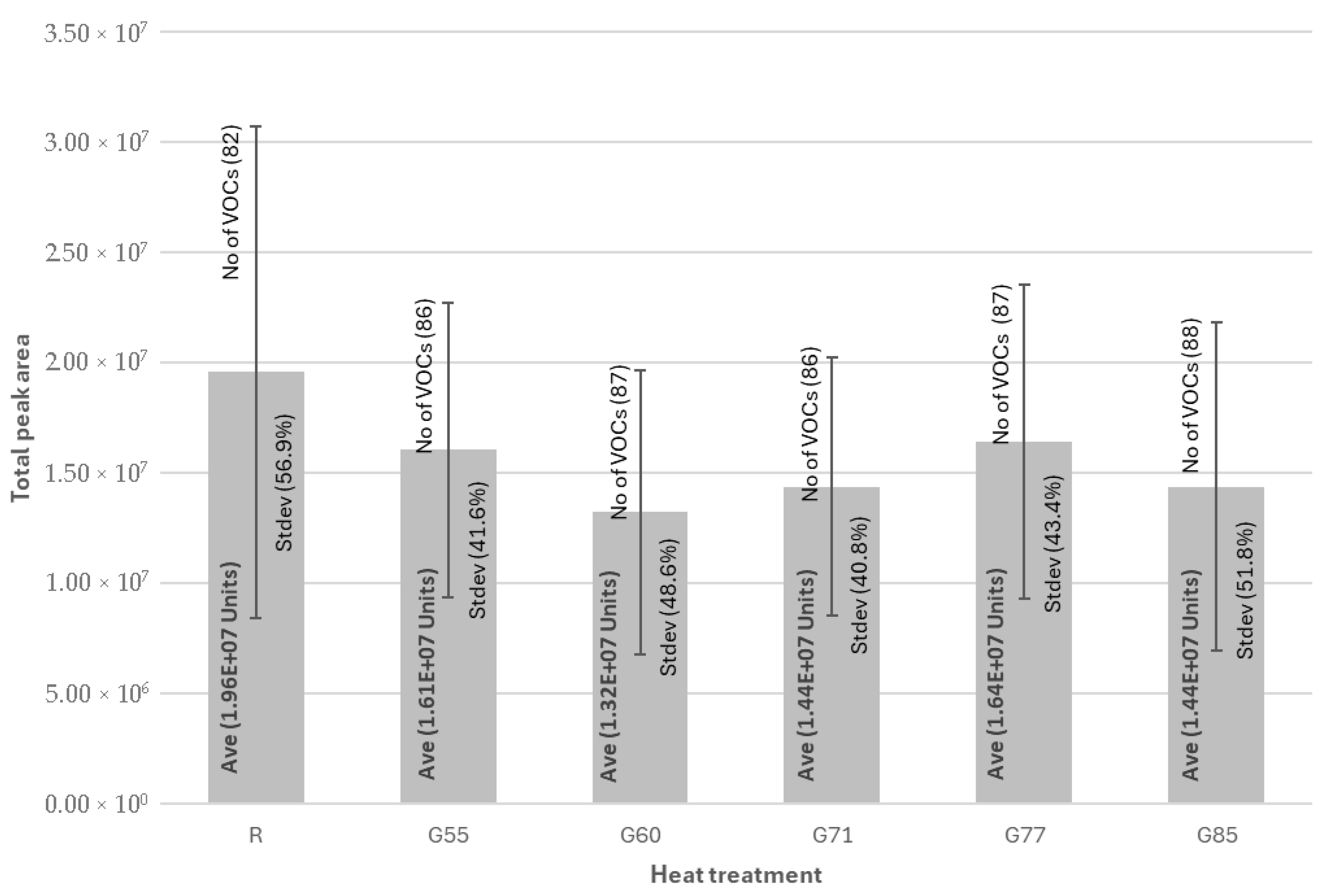 | Chemical Class | Individual VOCs | CAS Number | LRI | Ref LRI | Volatiles Expressed as Percentage of Total (%) | ||||||
