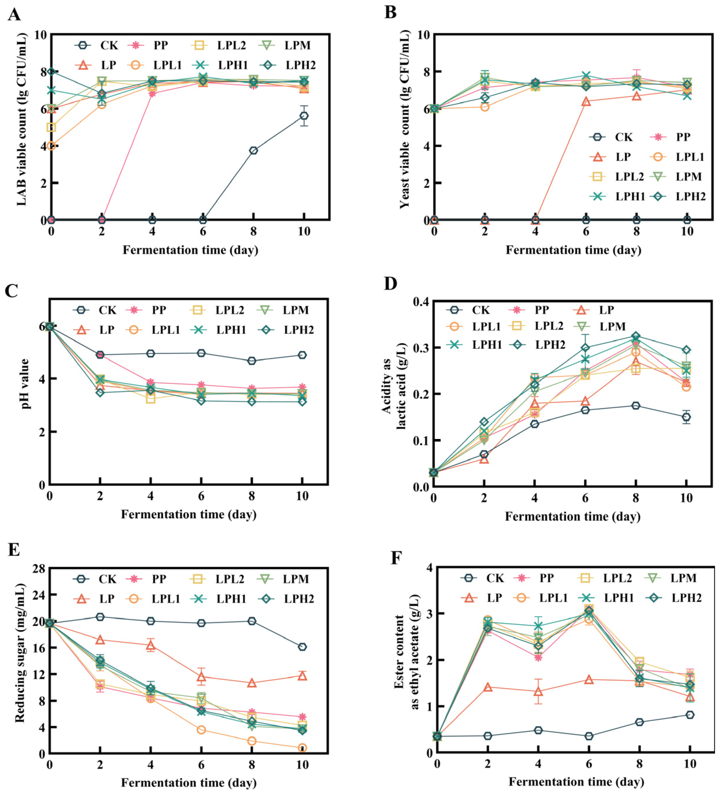3.1.1. Changes in Viable Counts During Fermentation Process