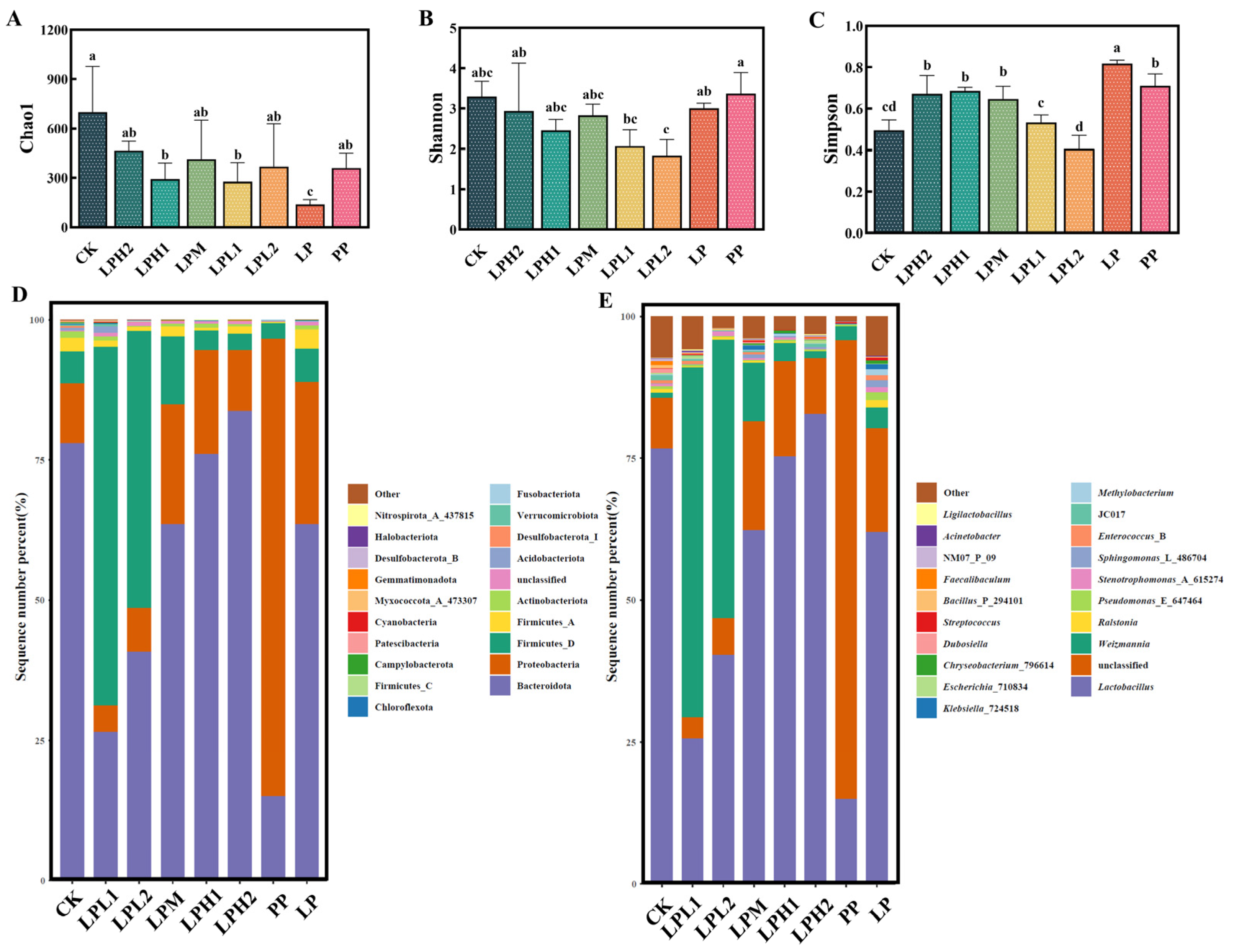3.7. Analysis of Microbial Diversity and Composition in FTB