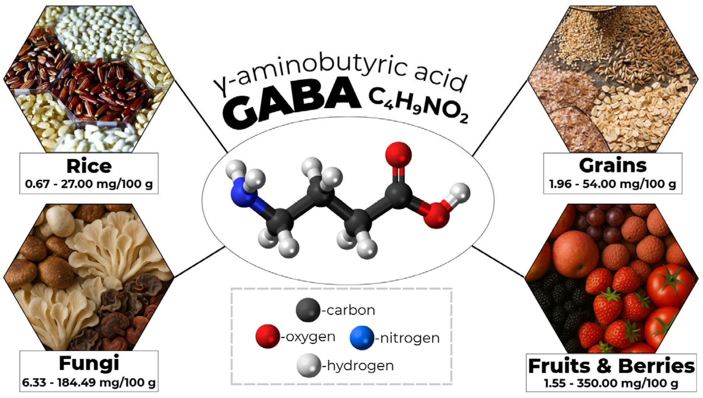 - Hou, D.; Tang, J.; Feng, Q.; Niu, Z.; Shen, Q.; Wang, L.; Zhou, S. Gamma-aminobutyric acid (GABA): A comprehensive review of dietary sources, enrichment technologies, processing effects, health benefits, and its applications. Crit. Rev. Food Sci. Nutr. 2024, 64, 8852–8874. [Google Scholar] [CrossRef]