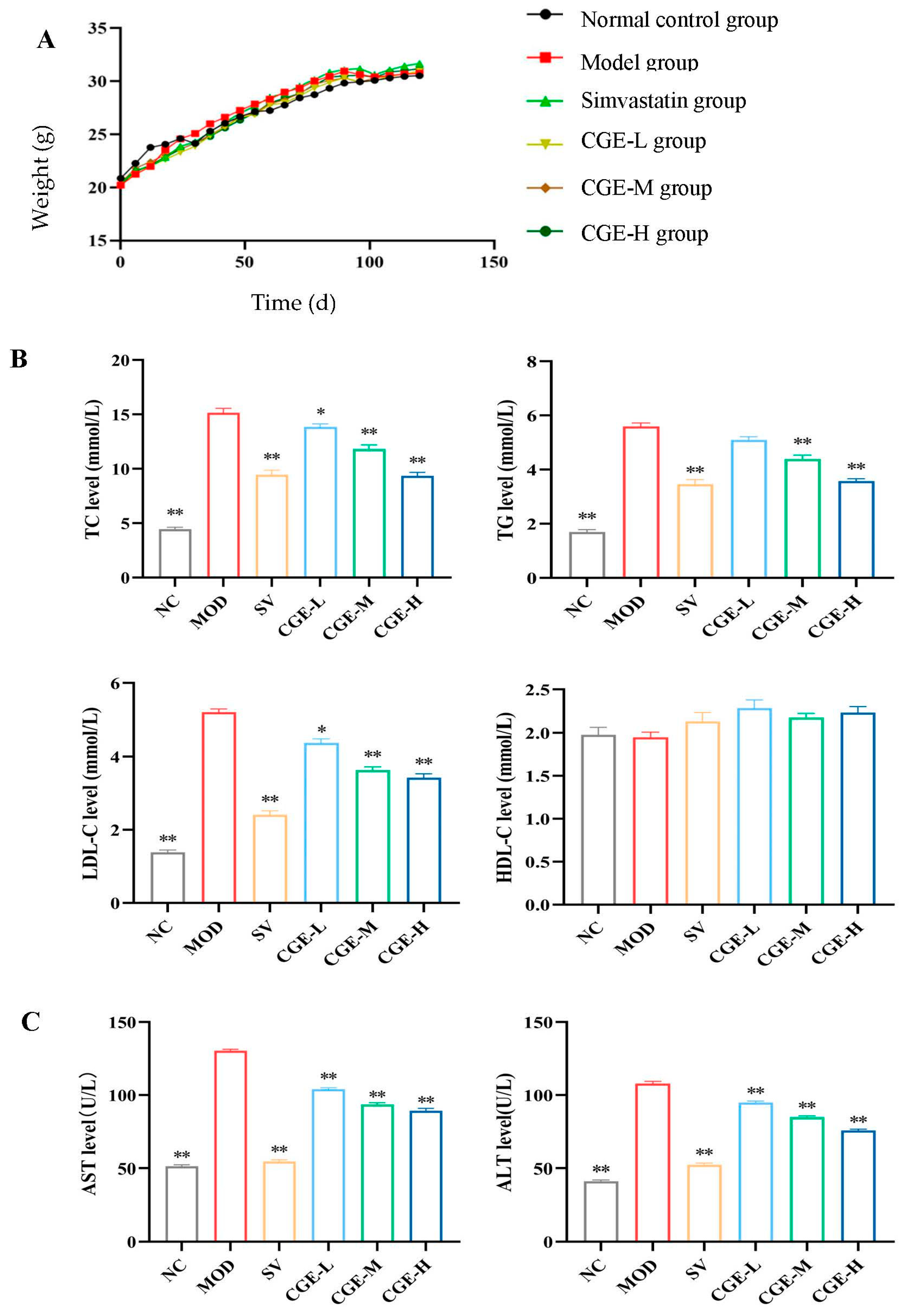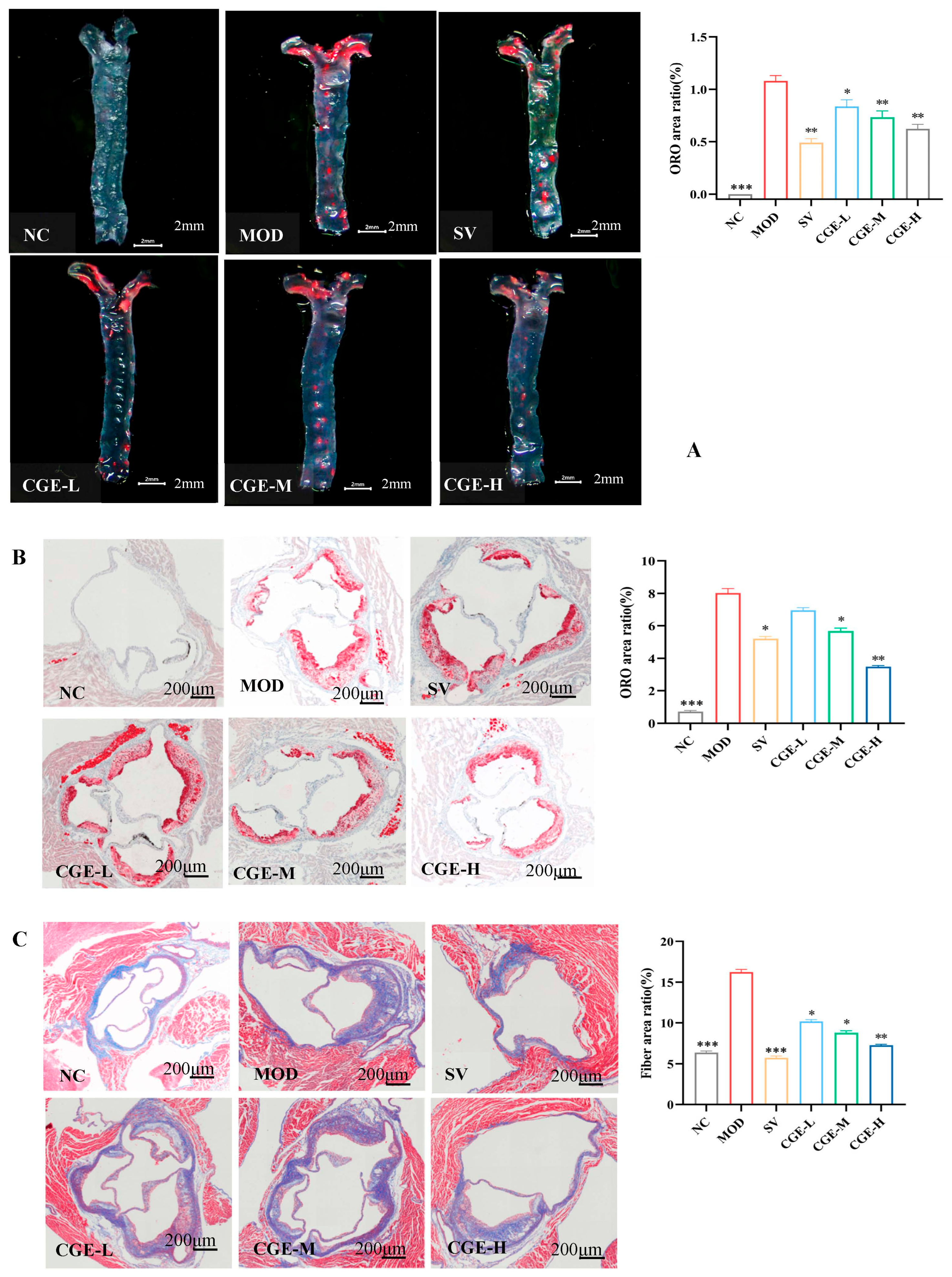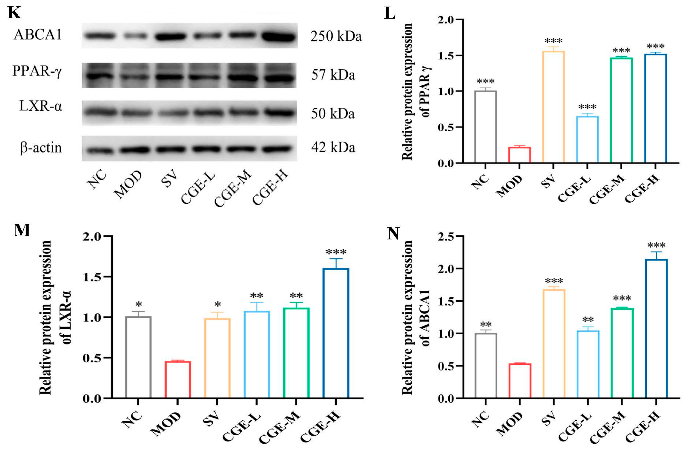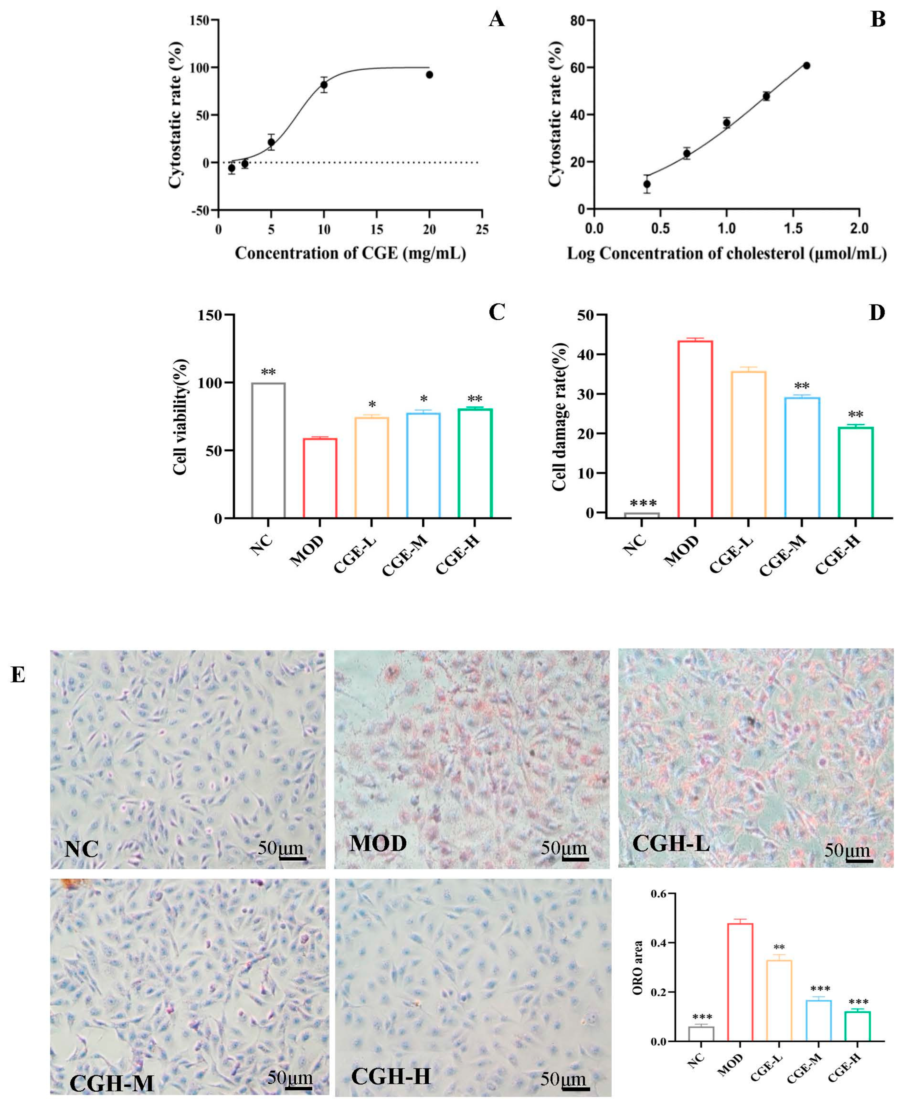 3.2. CGE Prevents Cholesterol-Induced Endothelial Injury