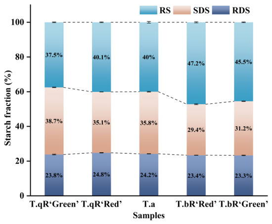 RDS, SDS, and RS contents of all water caltrop starch samples.