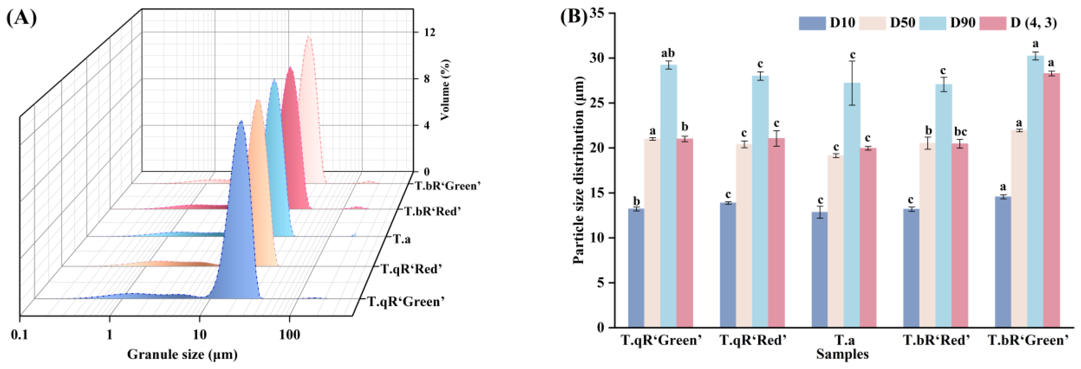 | T.qR‘Red’ | 85.88 ± 0.59 a | 3456.67 ± 35.11 b | 2286.67 ± 14.64 a | 3868.00 ± 7.54 b | 1193.00 ± 6.08 b | 1589.33 ± 9.01 c |