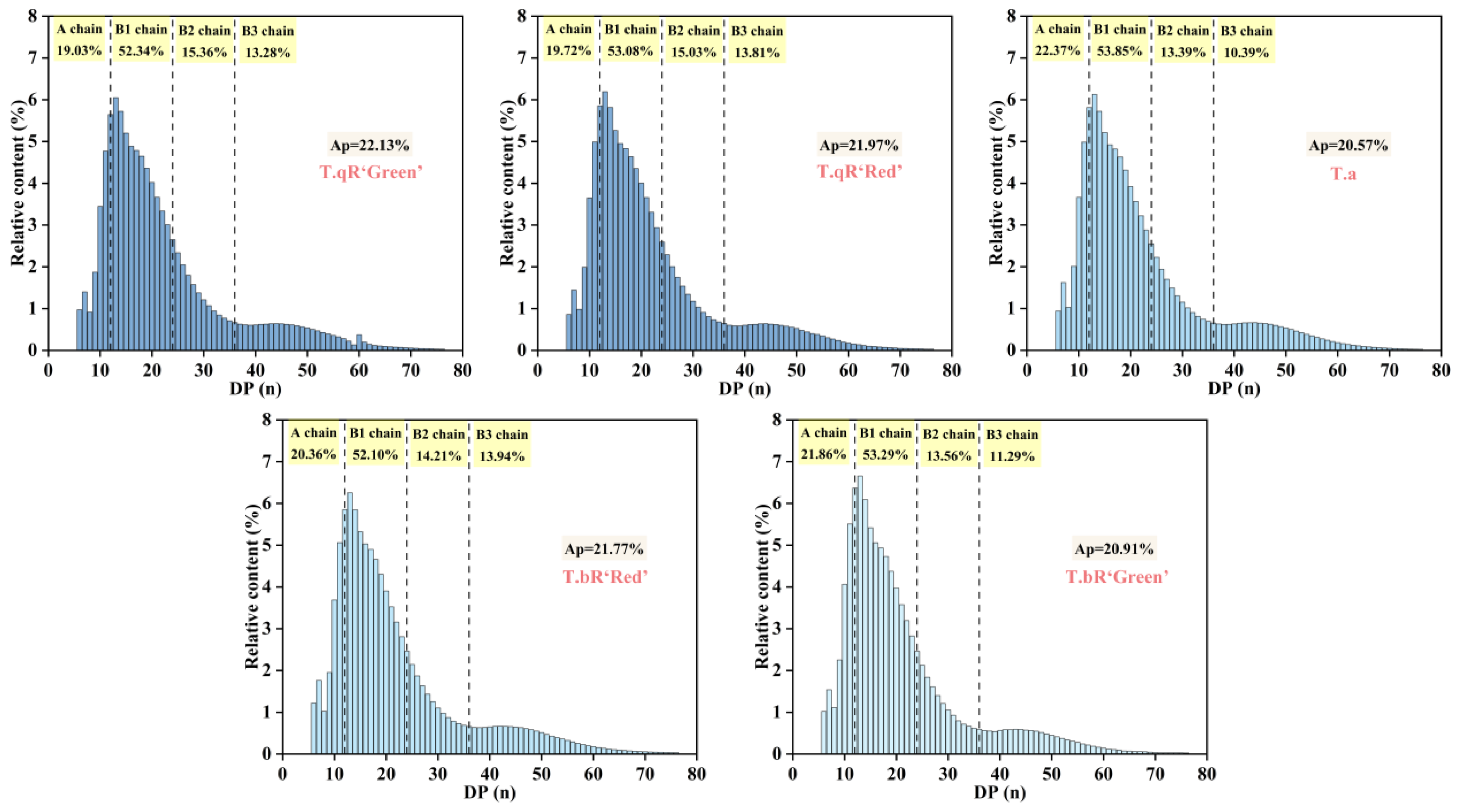 - Gebre, B.A.; Zhang, C.; Li, Z.; Sui, Z.; Corke, H. Impact of Starch Chain Length Distributions on Physicochemical Properties and Digestibility of Starches. Food Chem. 2024, 435, 137641. [Google Scholar] [CrossRef]