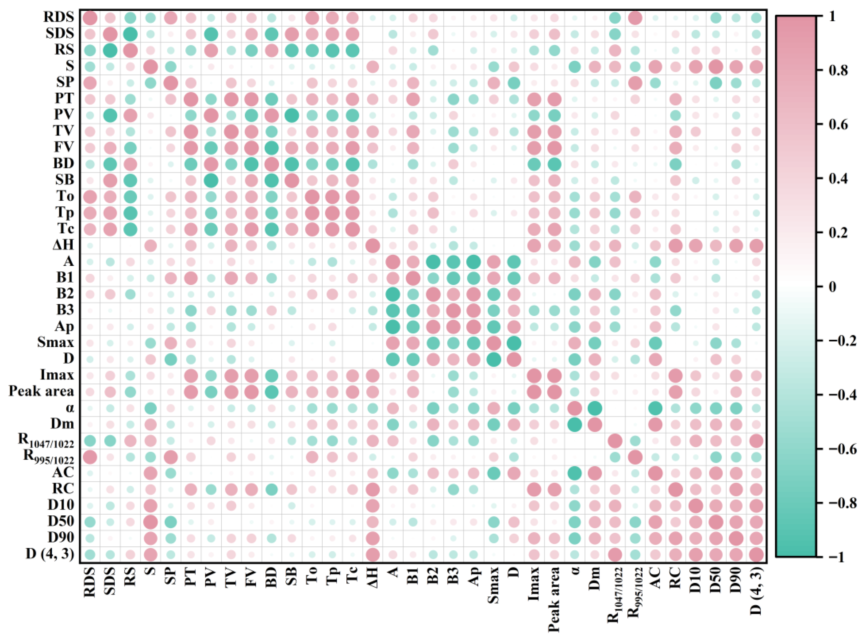 - Zhang, C.; Xue, W.; Li, T.; Wang, L. Understanding the Relationship between the Molecular Structure and Physicochemical Properties of Soft Rice Starch. Foods 2023, 12, 3611. [Google Scholar] [CrossRef]