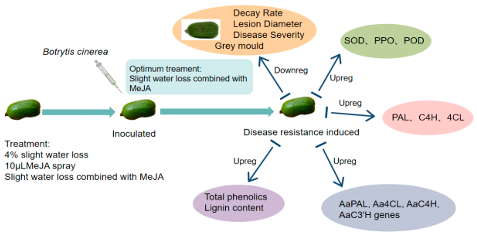 APA StyleLiu, X., Wang, Q., Wang, F., Wei, B., Zhou, Q., Cheng, S., & Sun, Y. (2025). Slight Water Loss Combined with Methyl Jasmonate Treatment Improves Actinidia arguta Resistance to Gray Mold by Modulating Reactive Oxygen Species and Phenylpropanoid Metabolism. Foods, 14(24), 4311. https://doi.org/10.3390/foods14244311