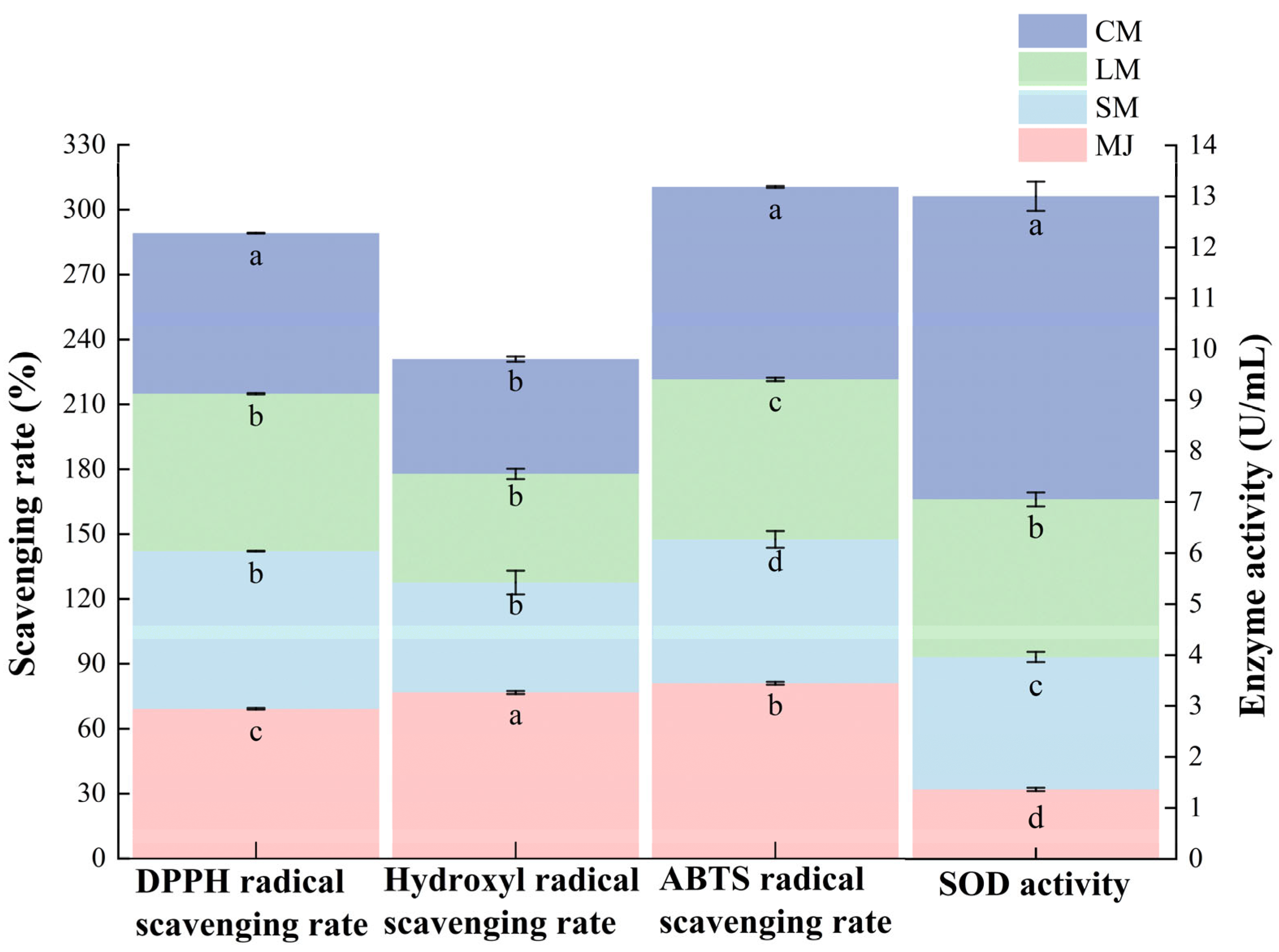 | Total acid (g/L) | 1.92 ± 0.12 d | 6.17 ± 0.13 c | 11.98 ± 0.14 a | 9.74 ± 0.09 b |