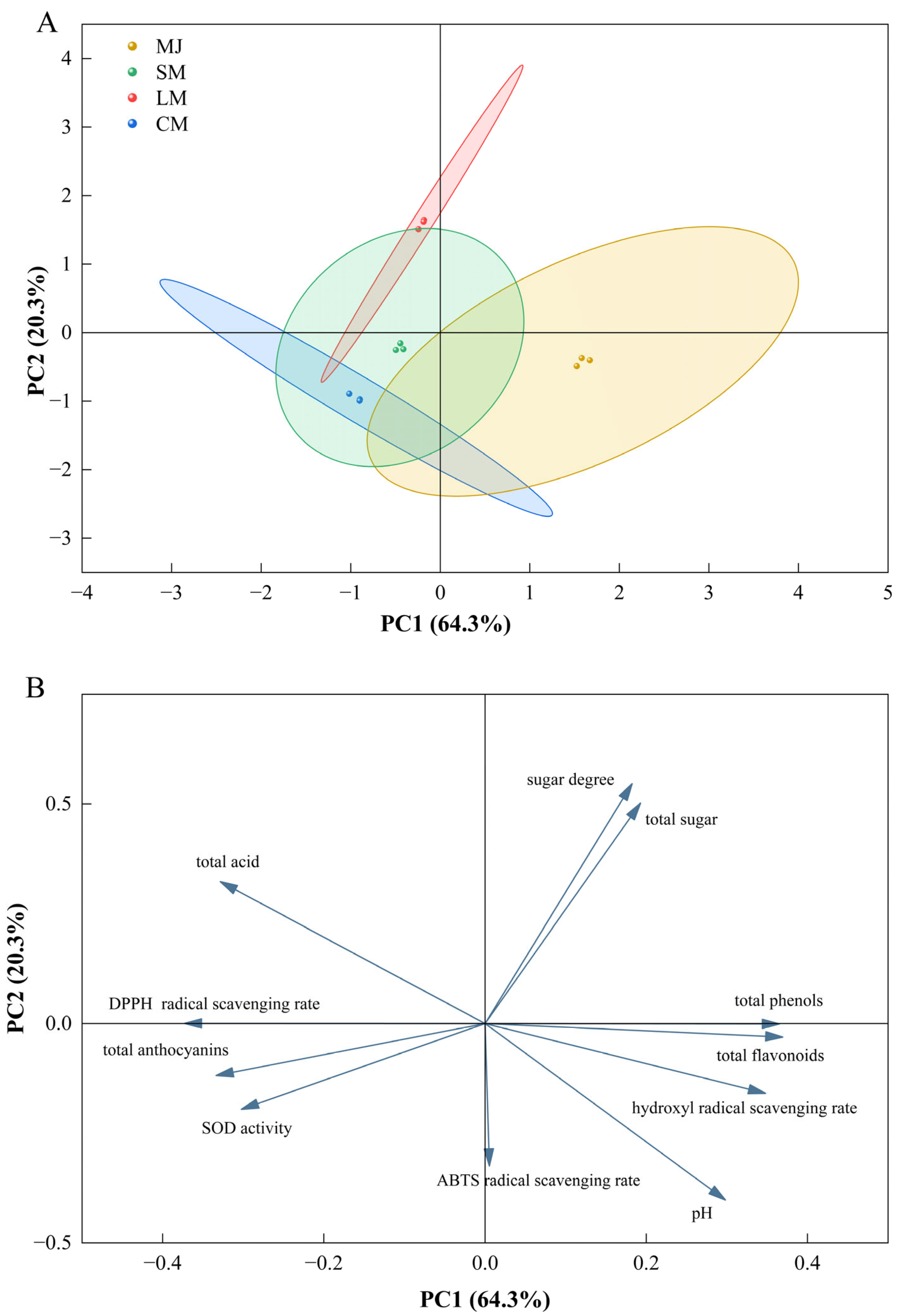 - Wang, K.; Qi, J.; Jin, Y.; Li, F.; Wang, J.; Xu, H. Influence of fruit maturity and lactic fermentation on physicochemical properties, phenolics, volatiles, and sensory of mulberry juice. Food Biosci. 2022, 48, 101782. [Google Scholar] [CrossRef]