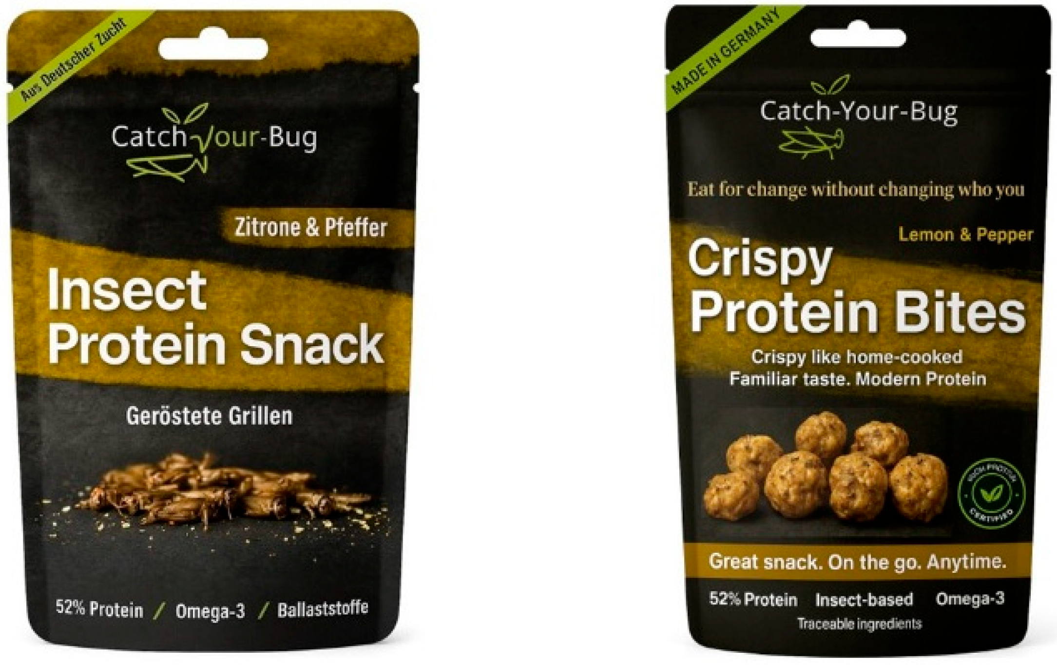 - Catch Your Bug. Gewürzte Insektensnacks 3er-Pack (je 15 g). 2025. Available online: https://www.catch-your-bug.com/products/gewurzte-insekten-snacks (accessed on 10 December 2025).