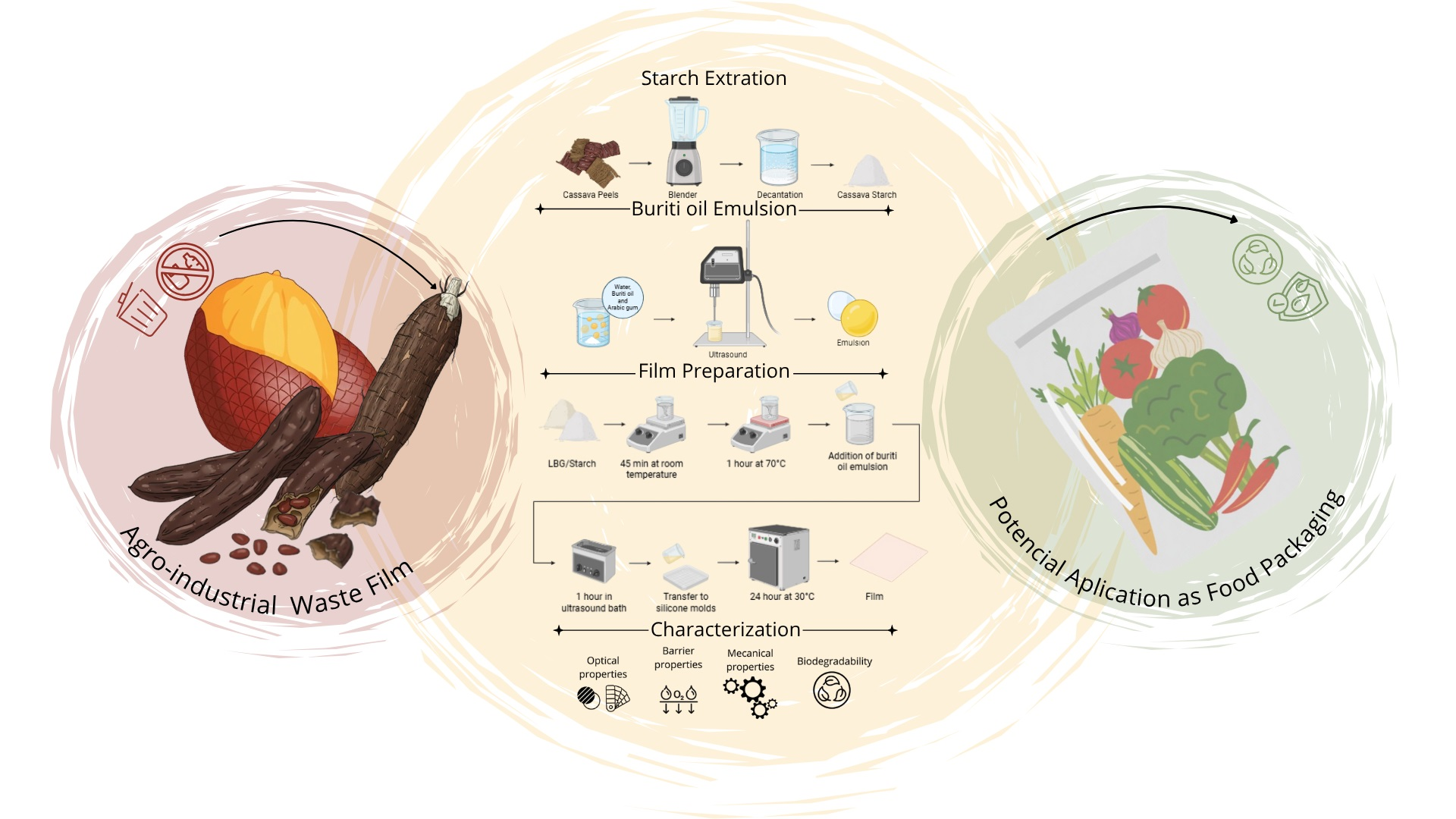 - Silveira, Y.D.; Franca, A.S.; Oliveira, L.S. Cassava waste starch as a source of bioplastics: Development of a polymeric film with antimicrobial properties. Foods 2025, 14, 113. [Google Scholar] [CrossRef]