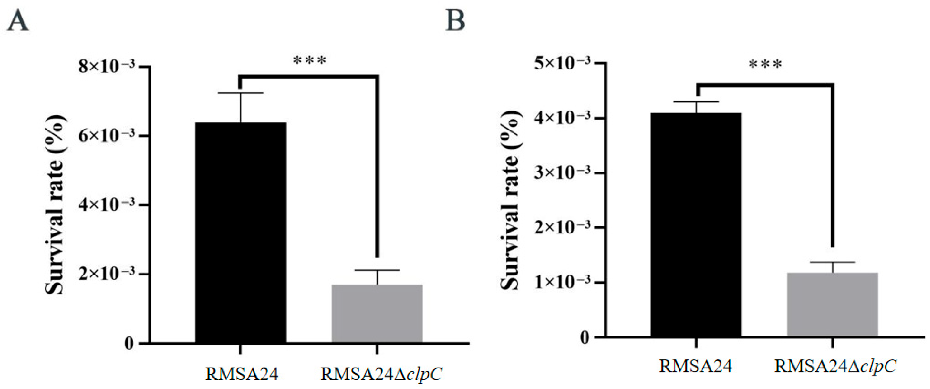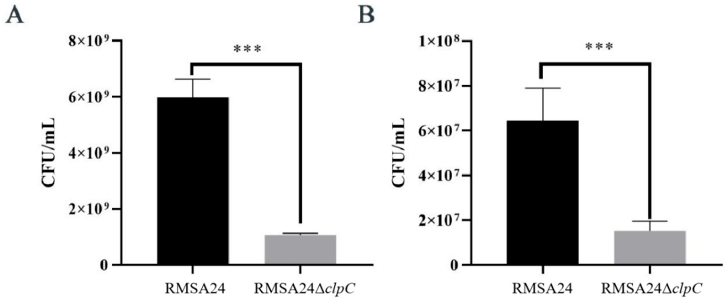 3.3. Effect of clpC Knockout on Thermotolerance in RMSA24