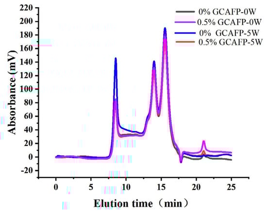 3.5.1. Effects of GCAFP on the Distribution of Relative Molecular Weight of Gluten Protein
