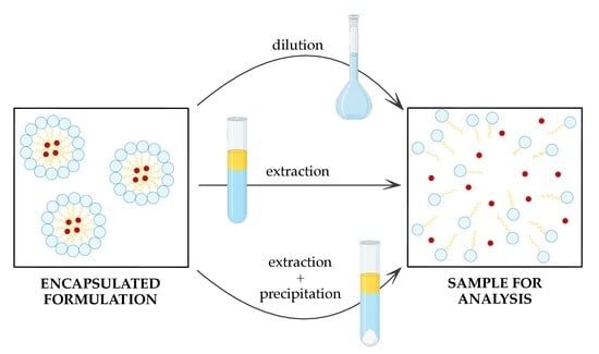 24]. They prepared nanomicelles, freeze-dried them into solid samples, and then dissolved them in acetonitrile for RP-HPLC analysis. However, our preliminary studies showed that for certain encapsulated formulations, more sophisticated and tailored sample preparation techniques are necessary to achieve accurate and reliable results.