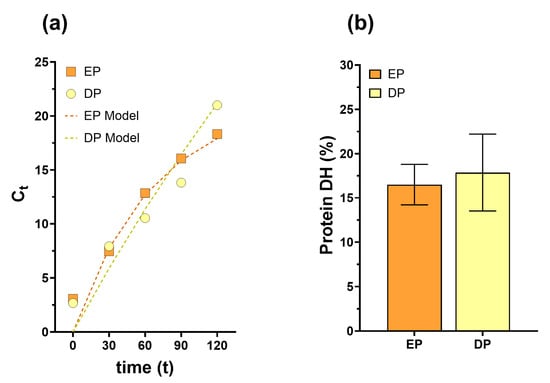 The protein hydrolysis degree was calculated according to the following equation, adapted from Pineda-Vadillo et al. (2020) [60]: