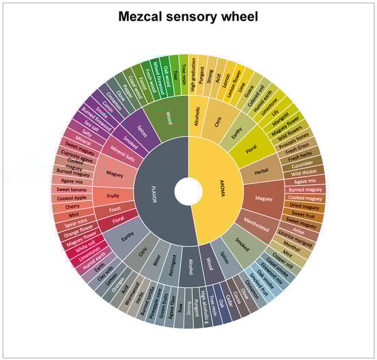 The descriptors used for this wheel are limited to the 20 Mezcal samples that were analyzed from two seasons of the production of agave from the Guerrero state area. Thus, it can be expected that certain modifications should be made over time as the wheel is presented to consumers and used by the Mezcal industry. Additional research will be necessary to improve the wheel or to include other Protected Designation of Origin Mezcal wheels different from that of the Guerrero state. Also, by analyzing a more considerable number of Mezcal samples from different harvest seasons and different cities with a PDO, the Mezcal odor and flavor wheel can be expanded and validated even further. Nevertheless, this study can be a basis for the sensory analysis of Mezcals with different agave varieties, distillation processes and origins.