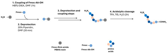 - Mäde, V.; Els-Heindl, S.; Beck-Sickinger, A.G. Automated solid-phase peptide synthesis to obtain therapeutic peptides. Beilstein J. Org. Chem. 2014, 10, 1197–1212. [Google Scholar] [CrossRef]