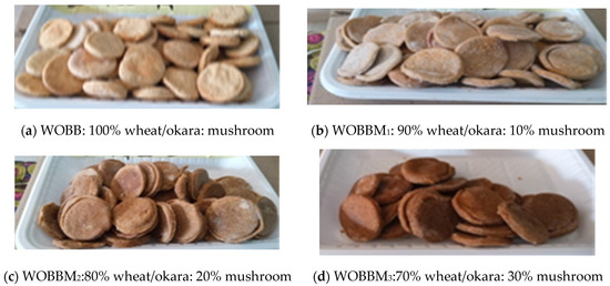 2.13. Pictorial Representation of Biscuit from Wheat/Okara and Oyster Mushroom Flour