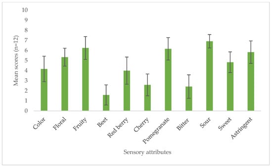 Mean sensory ratings of the 10% pomegranate juice wine.