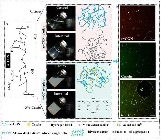 - Guo, J.; Zhu, S.; Chen, P.; Liu, Z.; Lin, L.; Zhang, J. Effect of physiological pH on the molecular characteristics, rheological behavior, and molecular dynamics of κ-carrageenan/casein. Front. Nutr. 2023, 10, 1174888. [Google Scholar] [CrossRef] [PubMed]