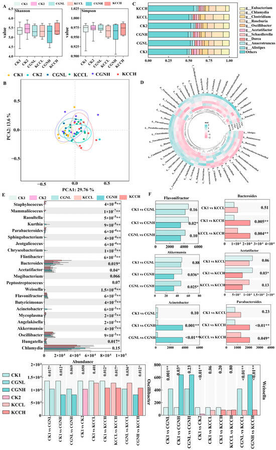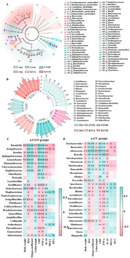 3.4. Effect of κ-CGN and κ-CC on the Structure and Diversity of Gut Microbiota in Mice