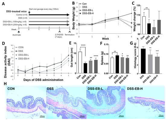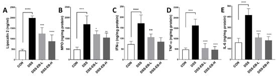 3.5. Effects of E. bicyclis Extract on Inflammatory Biomarkers in DSS-Exposed Mice