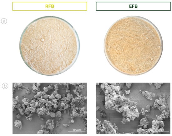 These differences in printing requirements arise from the distinct physicochemical and rheological properties of each raw material (Table 2). In the case of RFB, its higher protein and fiber contents, coupled with elevated τ0, K, and viscoelastic moduli (G′ and G″), create a denser, more viscous network that requires more water and lower printing temperatures to avoid excessive denaturation or lump formation. Conversely, EFB contains a higher proportion of digestible carbohydrates and lower protein and fiber contents, as well as lower rheological parameters (τ0, K, G′, G″), facilitating easier initial flow with more elastic and fluid behavior. Under these conditions, EFB requires less water but requires a higher temperature to ensure sufficient cohesion and firmness during printing.