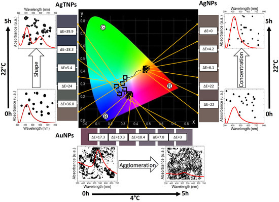 - Prosposito, P.; Burratti, L.; Venditti, I. Nanoparticles as colorimetric sensors for water pollutants. Chemosensorsy 2020, 8, 26. [Google Scholar] [CrossRef]