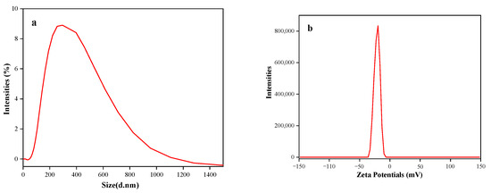 Particle size (a) and zeta potential (b) of taro essence microcapsules.