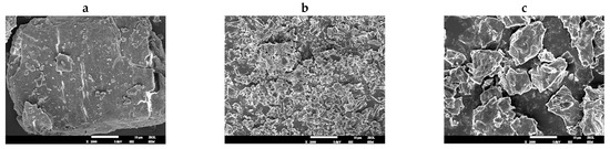The SEM images of β-CD (a), blank microcapsules (b), and taro essence microcapsules (c).