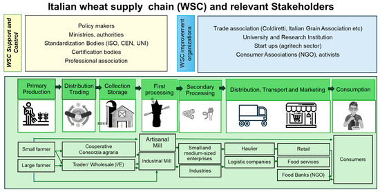 Simplified scheme of the Italian wheat supply chain and relevant stakeholders.