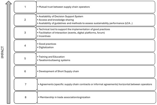 The highest impact enabling factor was identified as mutual trust between supply chain operators. It was noted that this ultimate goal can be achieved only if most of the other envisaged enabling factors are properly leveraged.