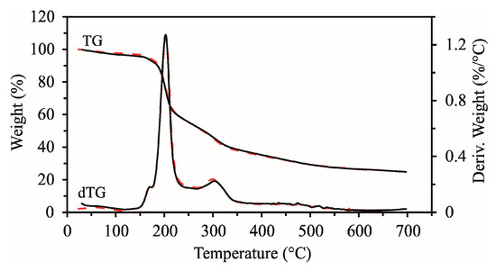 - Leal, G.F.; Ramos, L.A.; Barrett, D.H.; Curvelo, A.A.S.; Rodella, C.B. A Thermogravimetric Analysis (TGA) Method to Determine the Catalytic Conversion of Cellulose from Carbon-Supported Hydrogenolysis Process. Thermochim. Acta 2015, 616, 9–13. [Google Scholar] [CrossRef]