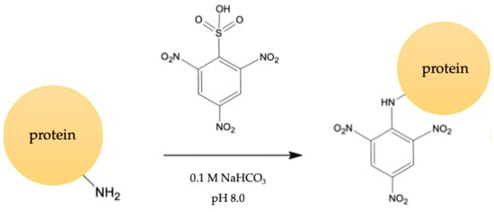 - Fields, R. The rapid determination of amino groups with TNBS. In Methods in Enzymology; Academic Press: Cambridge, MA, USA, 1972; Volume 25, pp. 464–468. [Google Scholar]