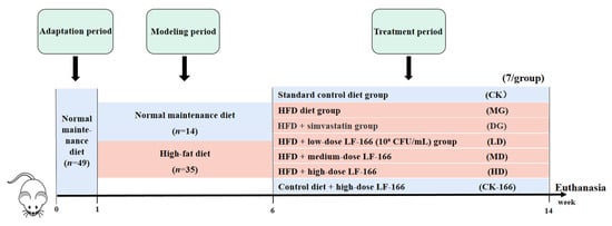 - Teng, Y.; Wang, Y.; Tian, Y.; Chen, Y.-y.; Guan, W.-y.; Piao, C.-h.; Wang, Y.-h. Lactobacillus plantarum LP104 ameliorates hyperlipidemia induced by AMPK pathways in C57BL/6N mice fed high-fat diet. J. Funct. Foods 2020, 64, 103665. [Google Scholar] [CrossRef]