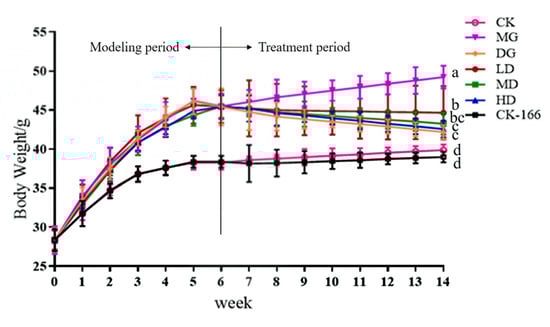 3.1. Effect of LF-166 on Growth Status and Body Weight in Mice