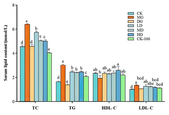 3.3. Effect of LF-166 on Serum and Liver Lipid Level in Mice