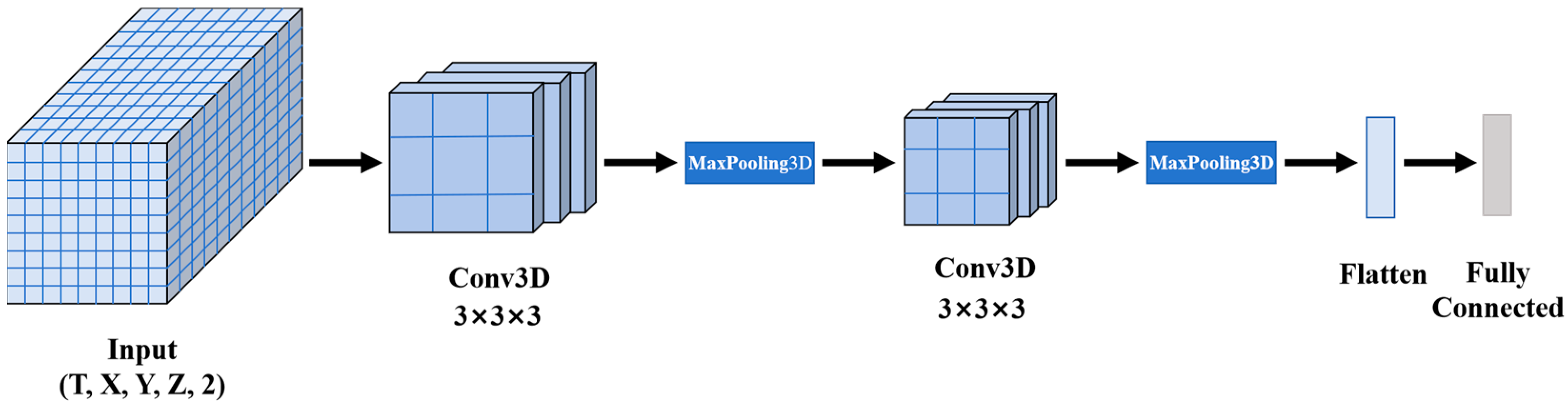 - Tran, D.; Bourdev, L.; Fergus, R.; Torresani, L.; Paluri, M. Learning spatiotemporal features with 3D convolutional networks. In Proceedings of the 2015 IEEE International Conference on Computer Vision (ICCV), Santiago, Chile, 7–13 December 2015; pp. 4489–4497. [Google Scholar] [CrossRef]