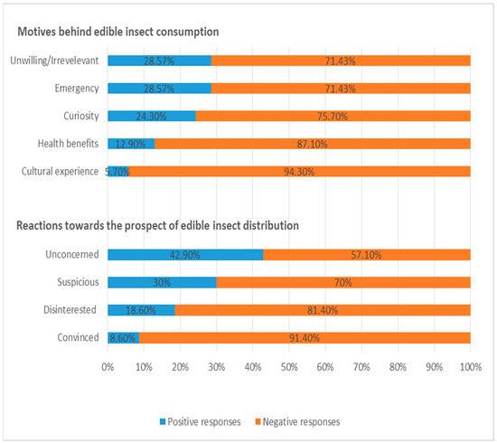 Motives behind edible insect consumption and participants’ reactions towards edible insect distribution through the food system (Ν = 70).