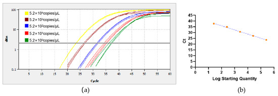 RT-qPCR (a) amplification plot and (b) standard curve diagram.