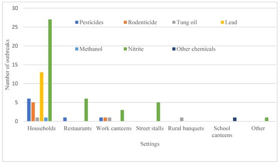 Chen, L.; Chen, J.; Wang, J.; Qi, X.; Zhang, H.; He, Y.; Zhang, R. Surveillance of Chemical Foodborne Disease Outbreaks in Zhejiang Province, China, 2011–2023. Foods 2025, 14, 936. https://doi.org/10.3390/foods14060936