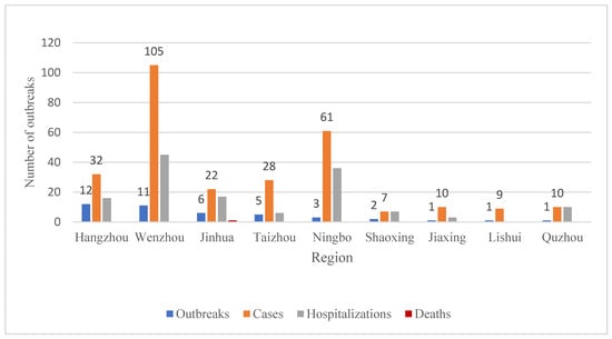 | Etiology | Outbreaks | Cases | Hospitalizations | Deaths Number | |||