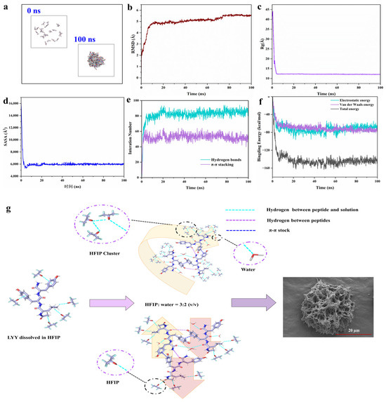 - Zhang, G.P.; Yue, K.; Wang, A.Q.; Zhong, W.S.; Yang, P.P.; Wang, L.; Ye, X.W.; Sun, X.C. Self-assembly and disassembly mechanisms of biomimetic peptides: Molecular dynamics simulation and experimental measurement. Int. J. Biol. Macromol. 2022, 209, 785–793. [Google Scholar] [CrossRef] [PubMed]