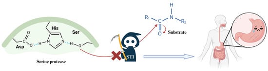 STIs have different changes in the stomach and small intestine. The activity of STIs usually decreases by 30–40% when exposed to human gastric juice (pH = 1.5–3.5) [75]. KTI can be rapidly inactivated following the disruption of structural integrity, while BBI has greater stability. STIs can prolong the retention time of food in the gastrointestinal tract especially in the small intestine [76]. Because the pancreas is adjacent to the duodenum, it is easier for STIs to form complexes with trypsin and decrease the activity of trypsin.