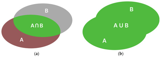 Symbolic representation: (a) intersection of sets; (b) union of sets.